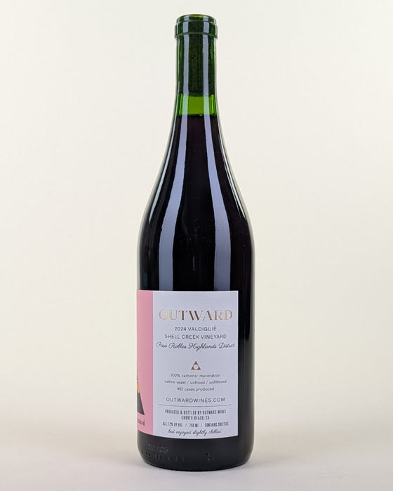 Outward Wines is the brainchild of Ryan Pace and Natalie Siddique, a partnership that began on a rock face, aka rock climbing. They quickly discovered a shared passion for adventure and wine. Natalie is a rock-climbing celebrity and former business owner, while Ryan comes from a winemaking family and studied at Cal Poly before cutting his teeth at Byron winery. Outward started with just two barrels of Syrah from Ryan’s father’s backyard vineyard, but now it’s their full-time pursuit, producing about 2,500 cases a year from single-vineyard, organically farmed sites along California’s Central Coast. They farm some of their own vines and source others, always with a focus on low-intervention, wild-yeast fermentations and no fining or filtration. With a sense of curiosity, they are committed to organic farming, and a love for the unconventional-making wines that are as expressive and adventurous as their own journeys.